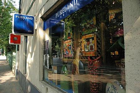 周辺に派手な洋館建てで目立つお店が多いからか、「PURELAND」 はちょっと気を抜くと見逃してしまいそうなほどシンプルな外観なので気をつけて! お店は衡山路と東平路の交差点北にあります。外から見ても 「ここはアート雑貨のお店かな?」 という雰囲気が伝わってきますよ。