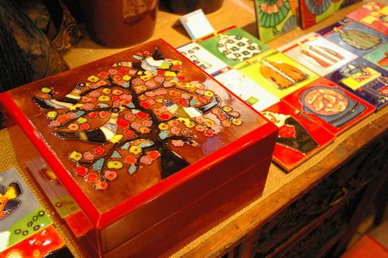 スタンドや壁掛けの絵だけでなく、漆塗りボックスとして陶板画を楽しめるのがこちらの商品。全体的に農民画を彷彿とさせるデザインが多く、そうした素朴なアートがお好みの方には、きっと気に入っていただけそうです。