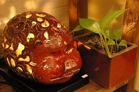 他にも、ブタの姿をしたユニークなランプもありました。和風のお部屋やアジアンテイストのお部屋にしっくりはまりそうなデザインです(580元)。このディスプレイのように、小さなグリーンと一緒にちょこんと飾るとステキかも。