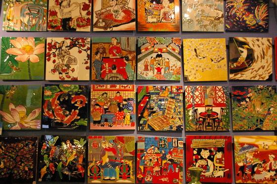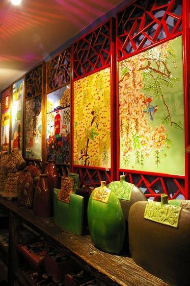 オシャレなレストランや雑貨店がたくさん集まる衡山路の一角で見つけた、民俗画タッチが素朴な陶板画のお店。