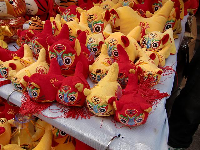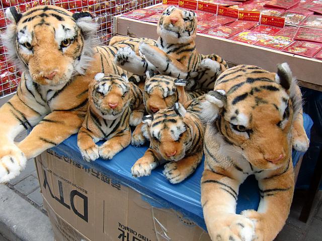 リアルなトラもずらり。路上で売られていました。